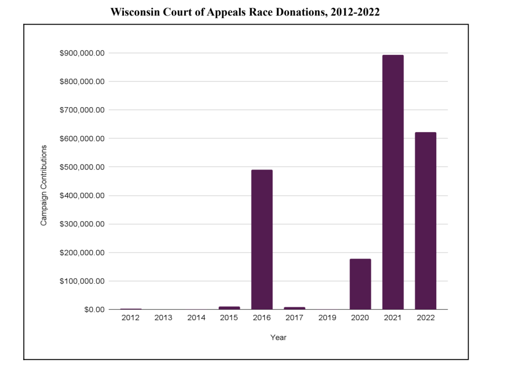 In elections for the Wisconsin Supreme Court, money from within and from outside the state has risen dramatically over the past 20 years. In 2003, during the race between Pat Roggensack and Ed Brunner, outside groups spent $27,200. In 2020, outside spending reached $5 million in the race between Jill Karofsky and Dan Kelly.